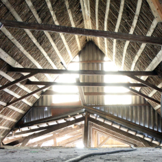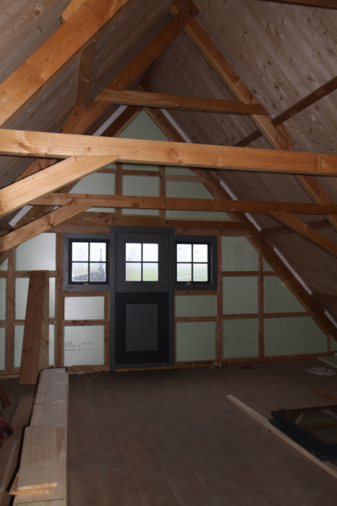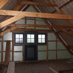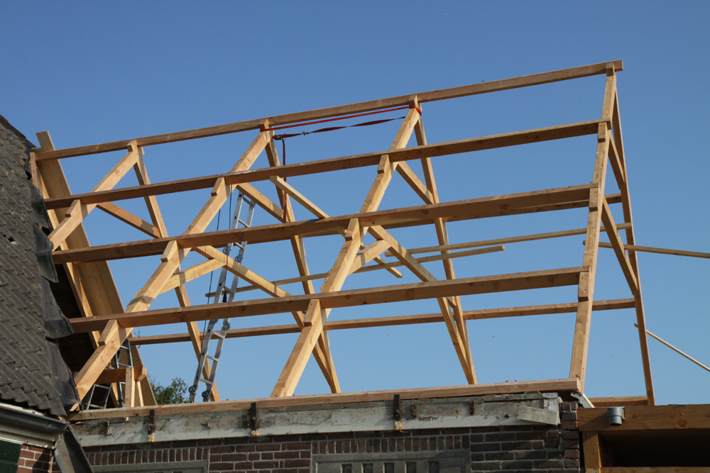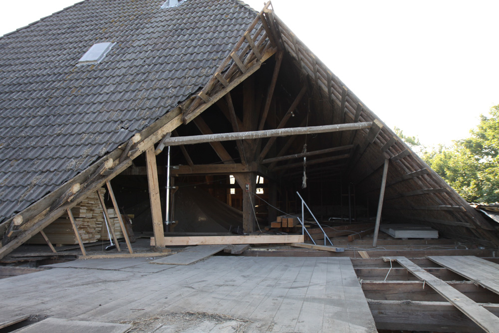 Het oude dakhout en waar nodig de sparren van de boerderij werden vervangen en er is isolatie geplaatst. Het geheel is afgewerkt met een Hollandse opnieuw verbeterde pan. Tussen de stal en topgevel is het platdak gedeelte geheel vervangen. In de boerderij is nieuw regelwerk geplaatst wat door de bewoner zelf afgetimmerd gaat worden met wisselende breedtes schothout.